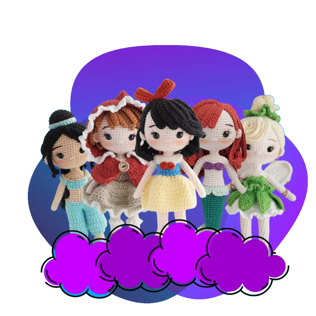 Las princesas amigurumi son siempre los modelos más lindos y llamativos, por eso puedes estar tranquilo que con el Mega Pack podrás contar con todas las princesas de películas y dibujos animados.